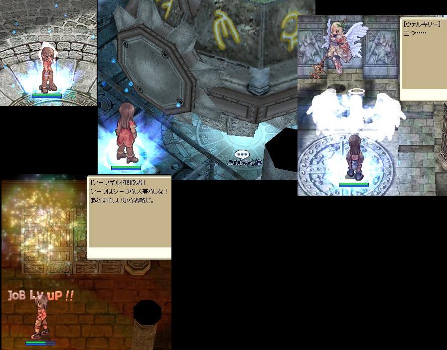 土曜日はちょうどお出かけナシだったので、 GめんのWizさん&田村仲間のプリさんの発光式に出席できました まずGめんさん発光 はわーど先生で一度は転びながらも光られました SS撮れなかった・・・!くちおしや。 続いてGめんさんのお知りあいで私の田村仲間のぷりさん。 ふぇんで光っておられましたこれも瞬間SS撮れず…w お二人ともおめでとうございますーー 最後はいつもの?枝祭りへー。 あと初めて転生1次の魂をもらったので、ついでにぱしゃっと。もの凄い能力上がるんですね…@@ そしてうちのひと。 DSも盗作もない弓廃シーフ…暇すぎました…! ジオ殴れるだけ他職よりラクなはずなのに BBに頼りすぎな贅沢狩りに慣れてしまっていました…。 おーくさんと懐かしのMAPに行ったり死にかけたり。 そしてうっふんへ インベ10にして47転職、と当初考えていましたが、メダルとか やってまで取るほどかなぁ?と色々調べて自問自答した結果… 40転職でいいと思います! という結論に 短剣でも、あぬびす毒にする時以外使ってないし…w あとは、ワシの目10→DS10にして、プリザを取れるJOBまで上げてきらきらっとしちゃう予定です…!