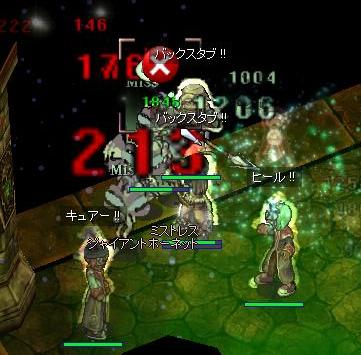 葱を置いといて忍者上げたりなんかしてます。 もうだいぶ飽きがきてしまってますが('ε'○) で、生体1Fに遊びに行ってみました。 マッタリりむーばさん焼き焼きのはずが… 気付けば変なスイッチON状態でしたスリル万歳っ。 各1次DOPにちゃれーんじ♪♪ あれ?前にもしたっけ…?まいいや! マジ君以外は意外といけましたすぐ枯れちゃいますがw さらに、見かけたので鬼門扱いのジェミニさん(水1)にも 喧嘩売ってみました!風玉持ってきてないのに!えへへ! 枯れるので2セットに分けてあたっくスリル万歳っ。 運よく水属性攻撃が来なかったので、楽にいけましたヨ☆ 例によって、箱の中身は……にんにん!キニシナイでござるよ! あとは、鉱山混んでたので久々カタコンでのんびり。 …のはずが。見つけてしまったDL様 最近の「スリル万歳っ。」がたたって、ついつい追いかけて氷閃槍 2枚目撮ろうとして、蝿ミスって属性でどつかれました。 1ですぺなげっと!いたーい どる◎ーがに…