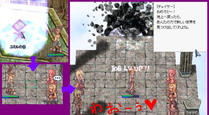 昨日は、まずアカデミーシークレットストーリー②をやってみました('ε'○) 話は聞いていましたが、①の時と違って長い…遠い… でも、話けっこう面白かったです。 アカデミー内で人間不信になりそうになってしまった…w MSS終わらせてからやったほうがいいです。絶対。 話が繋がって面白く… 逆にMSSしてないと、話の意味わかんない気もします。 そしていつもの ぺちぺちIN火山ほか。 夜、また犬のひと&百万石のひとにあぬあぬ連れてって 頂けました…♥♥ 相変わらずめっちゃ美味しかった!沸き沸きでしたしw ホントありがとうございますーーー♪♪♪ SDで一気に稼いで、あとは夜中少し火山に篭って… 憧れの… 白葱━━━ヽ(・_・`)ノ━━━ィ!!!! ハイド5、インベ10の47転職です♪ やっと青い服になりました…(´;ω;`)ウウッ もう、う◎こ座りもコマネチも使い放題。:+((*'艸`★))+:。ウフフヒヒハ