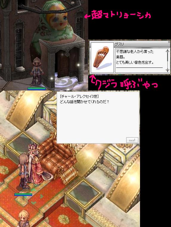 日曜の夜そのご? 室内溜まり場で油~ 人数が増えると、召喚の確率上がるって初めて知った! 3人いればBOSSも呼べるなんて凄いっ。 生体3ツアーに ガイルは1度通りすがりのパラさん&はいぷりさんに お助け頂いて倒しましたが… 2人以上で来られると無理☆ で、くるせー おでん神殿クエスト中♪ てれぽでホールインワン★ そんなこんなで 育ってまーす(「・ω・)「